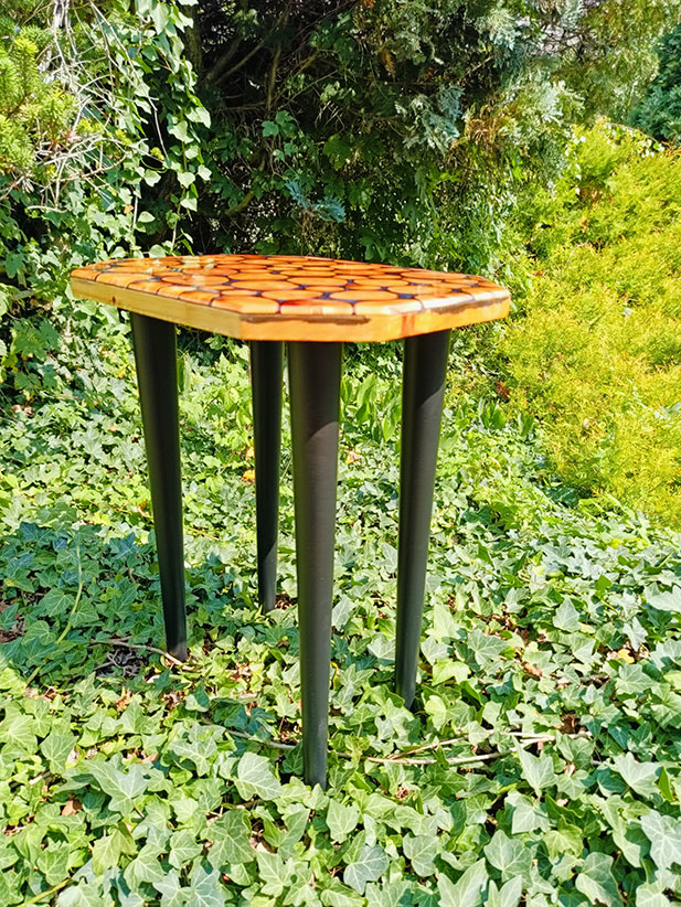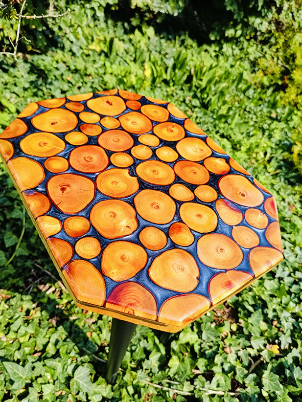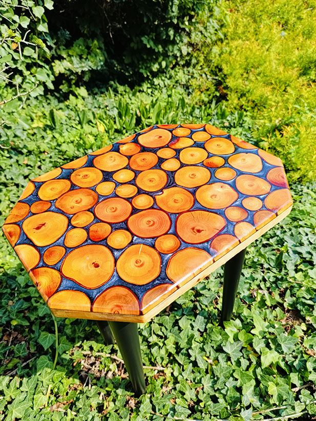 Stolik kawowy, plastry drewniane zalewane żywicą epoksydową dł.39,5cm/szer.30cm/wys.48,5cm